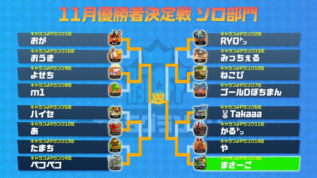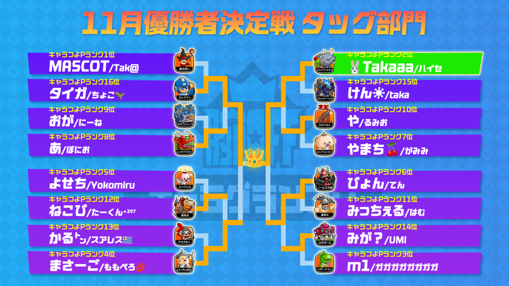キャラつよGPのフレーム所持者が集う腕OFF公式大会「腕OFFキャラグランプリ 11月優勝者決定戦」が終了しました。