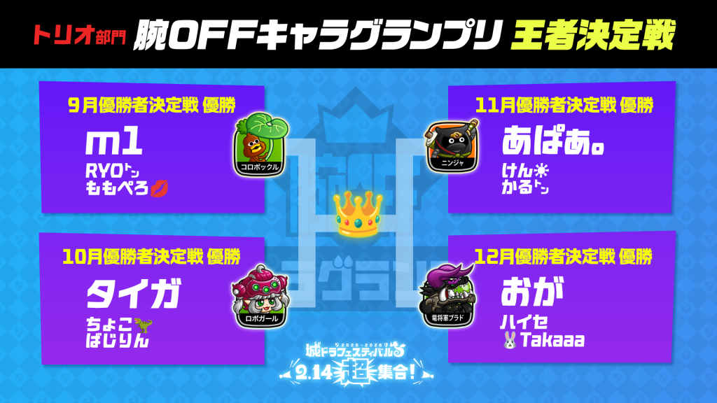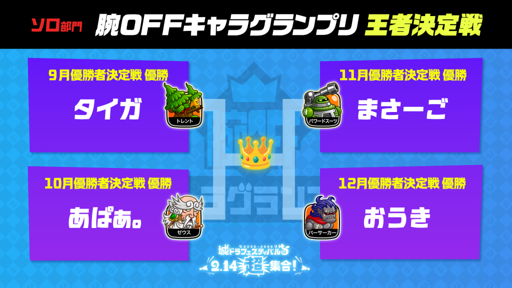 9月、10月、11月、12月優勝者決定戦は終了いたしました