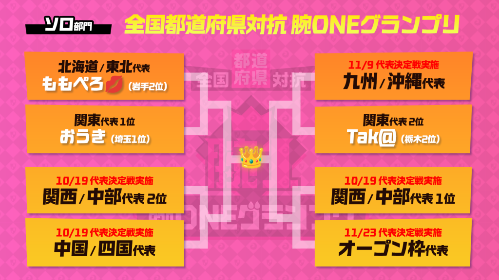 ※各地方代表決定戦は上位10名(10チーム)によるトーナメント形式での実施です。トーナメントの優勝者がその地方の代表枠を獲得できます。